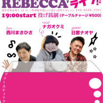 ■2026/3/14(土) ワインバルREBECCA :西宮市和上町1-12 1F tel.090-6609-3751 ナガオクミ(vo)日置ナオヤ(gt